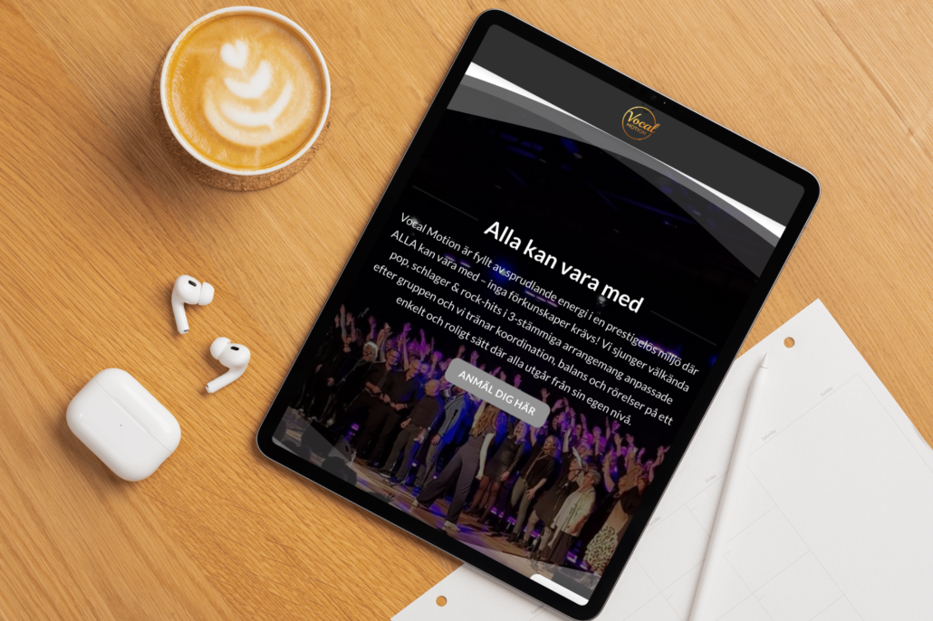 Vocal Motion behövde en ny hemsida och webbshop som skulle spegla den energi och gemenskap som kören står för och göra det enkelt för nya deltagare att hitta information och anmäla sig.